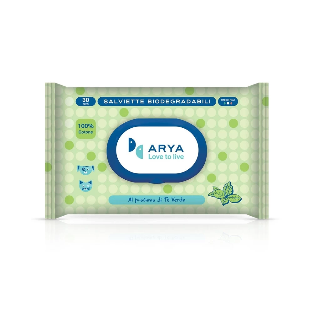Al profumo di Tè Verde Le salviette biodegradabili ARYA detergono in modo del tutto