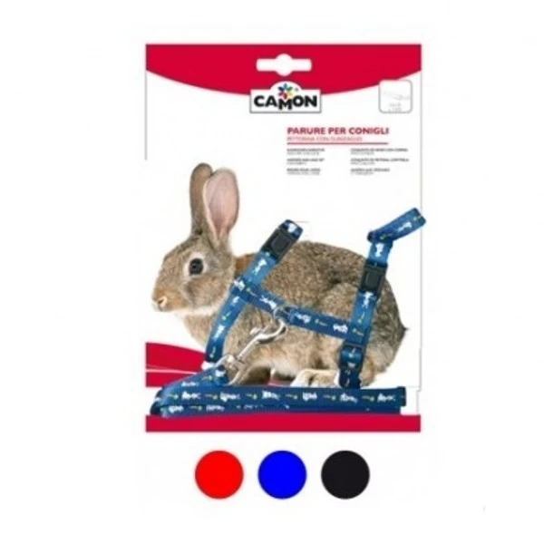 Parure pettorina e guinzaglio in nastro di nylon con sgancio rapido, particolarmente adatta ai conigli.