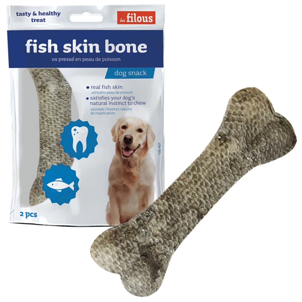 Ossa pressate in pelle di pesce da masticare. A basso contenuto di grassi