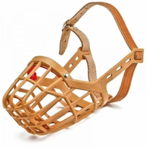 Una museruola confortevole, comoda da indossare grazie al laccetto in cuoio regolabile.
