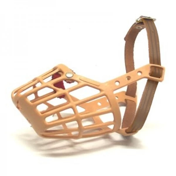 Una museruola confortevole, comoda da indossare grazie al laccetto in cuoio regolabile.